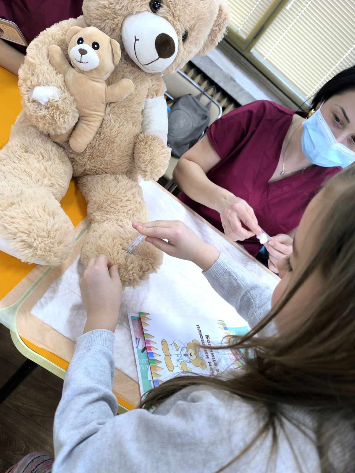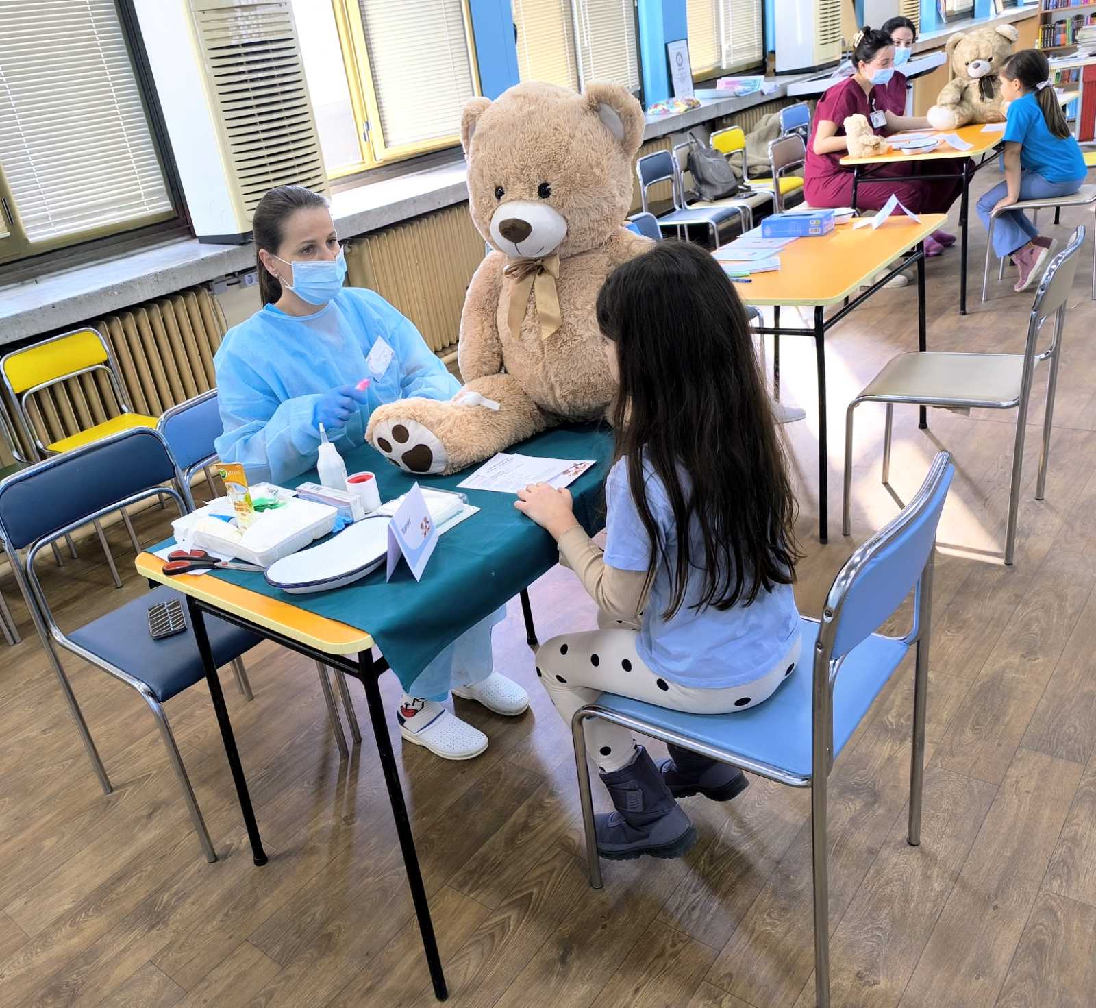 С много внимание и топлота бъдещите медицински сестри стопиха дистанцията между децата и медицинската професия по един естествен, достъпен и истински детски начин. Заедно те поставяха „диагнози“ на ранените плюшени пациенти, превързваха ги и им предписваха грижи, превръщайки играта в ценен урок по съпричастност и смелост.