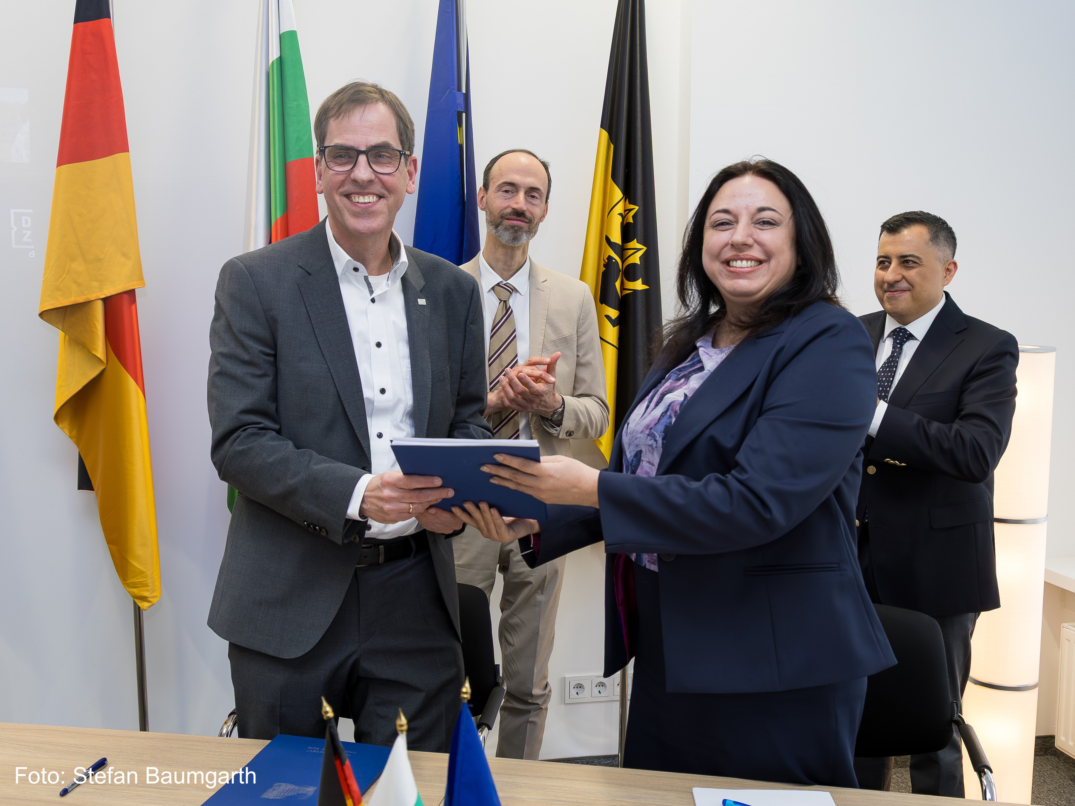 The signing was attended by Academician Hristo Beloev, DscEng, honourary rector and chairman of the General Assembly of the University of Ruse, Vice-Rector Professor Teodor Iliev, and Senior Assistant Professor Yuri Tsenkov.