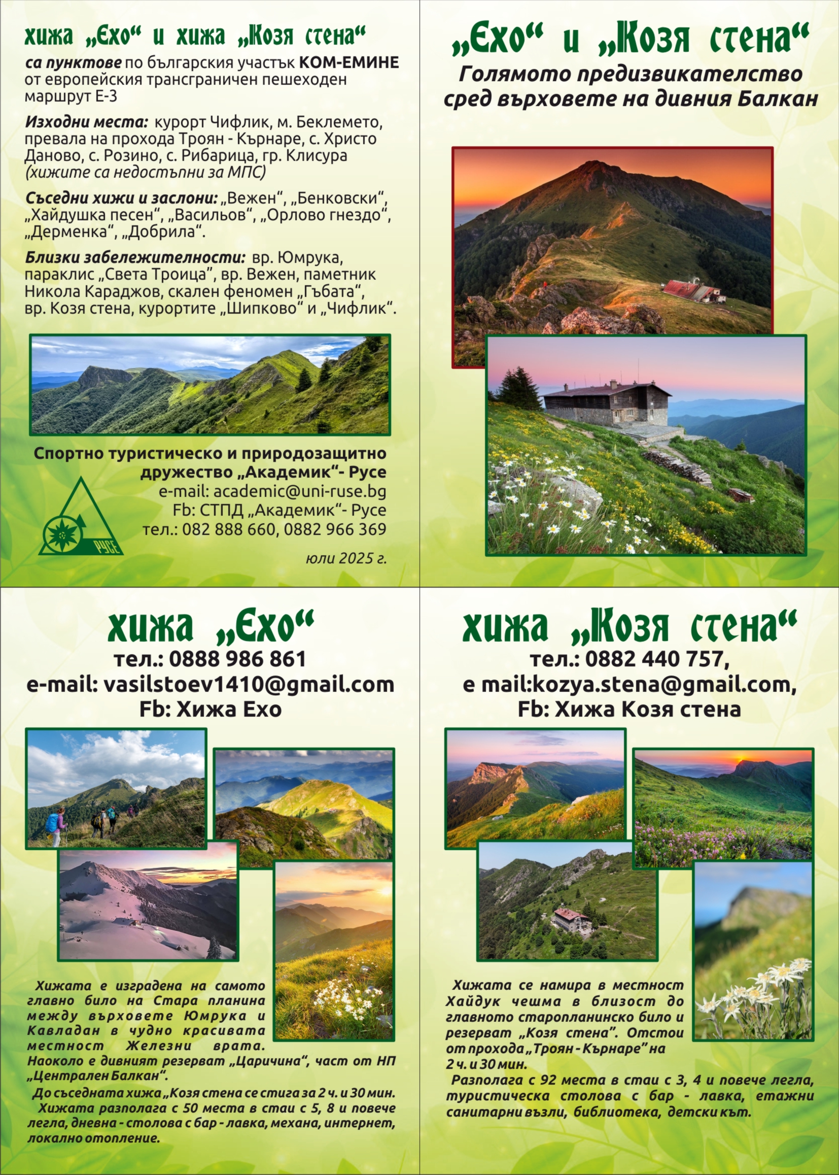 • НАШИТЕ ХИЖИ „ЕХО“ И „КОЗЯ СТЕНА“ И ТУРИСТИЧЕСКАТА МАРКИРОВКА  ДО ТЯХ